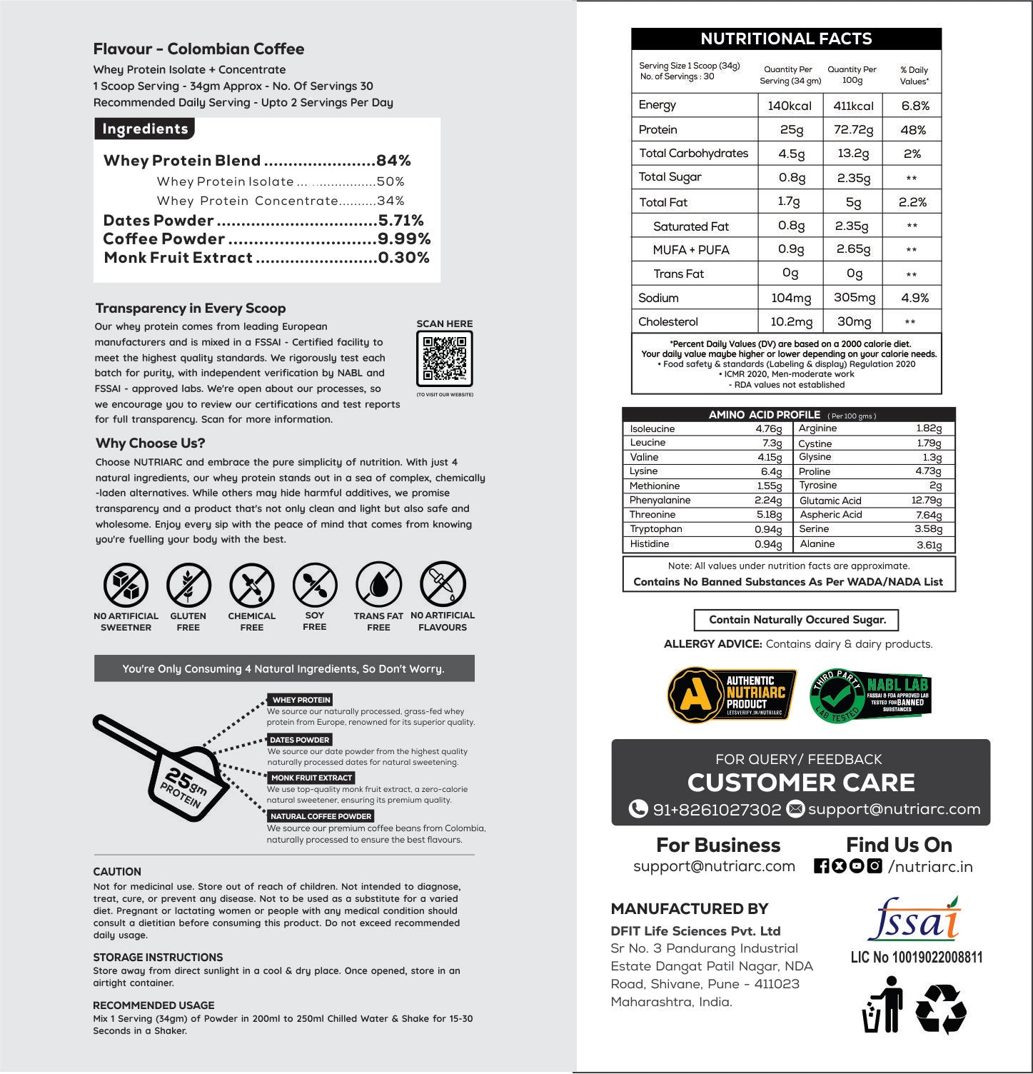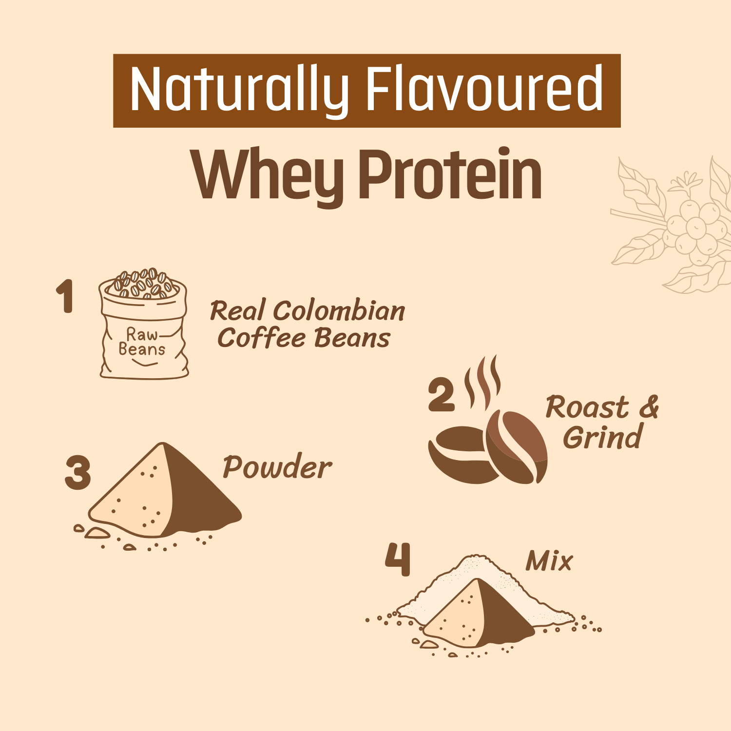 Whey Protein Isolate, Whey Protein Concentrate, Natural Coffee Powder, Dates Powder Monk Fruit Extract..Thats It!
